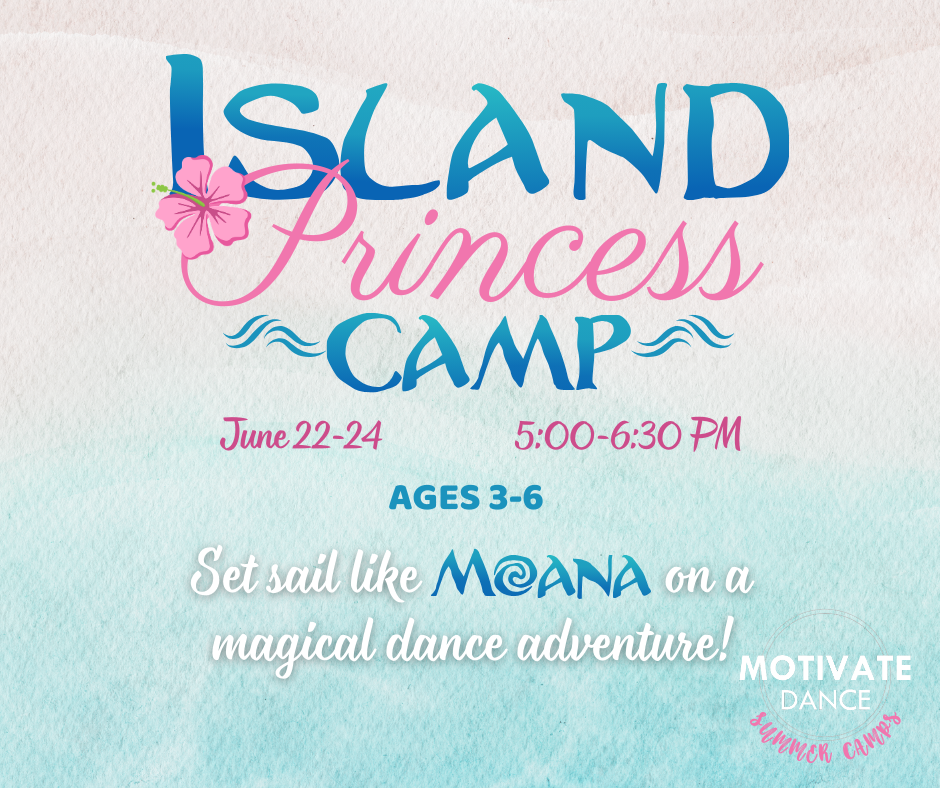 Our Moana ISLAND PRINCESS Camp is designed especially for dancers ages 3–6. Each day, little explorers will journey across the ocean through creative movement, beginner dance technique, storytelling, and imaginative play.